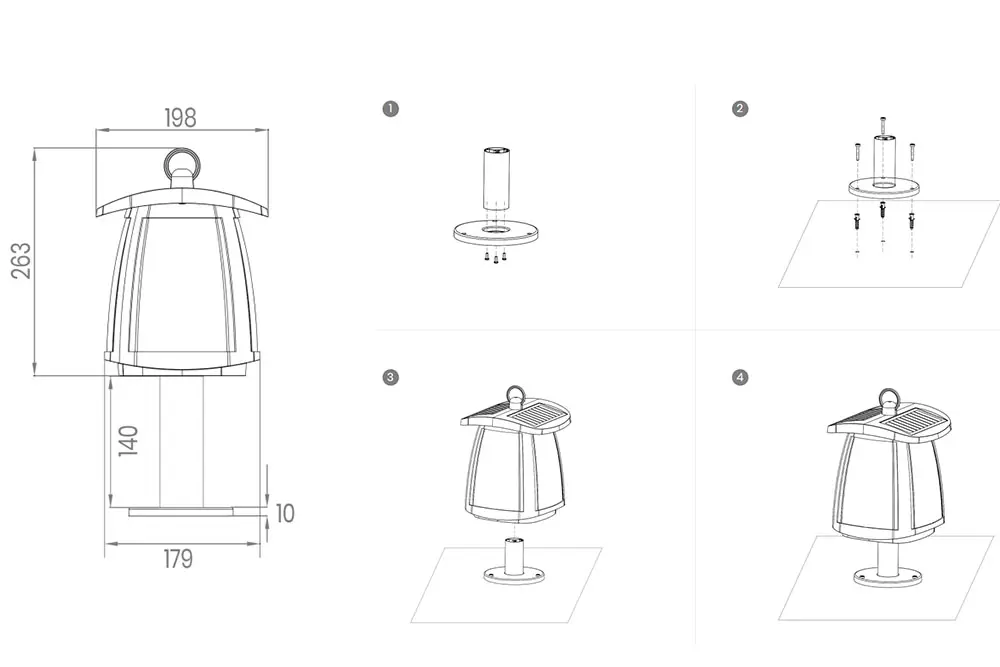 Montaggio su qualsiasi colonna e terreno con gli accessori in dotazione.