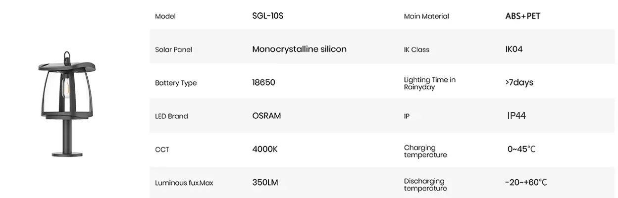 Sistema di illuminazione per giardino/parco/cortile/via/portico/recinzione/cancello destinato all'uso con sorgenti luminose a LED.