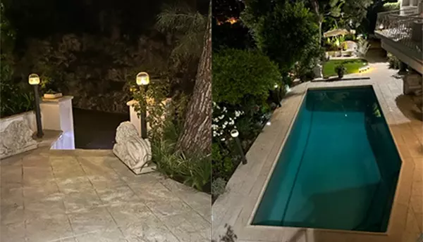 Tracker Bollard Post Light è stato installato nel cortile di questo hotel in stile rinascimentale, illuminando la piscina, il giardino, la terrazza e il balcone. Questi apparecchi contribuiscono a fornire all'hotel un ambiente luminoso di qualità, rendendo il soggiorno bello e confortevole.